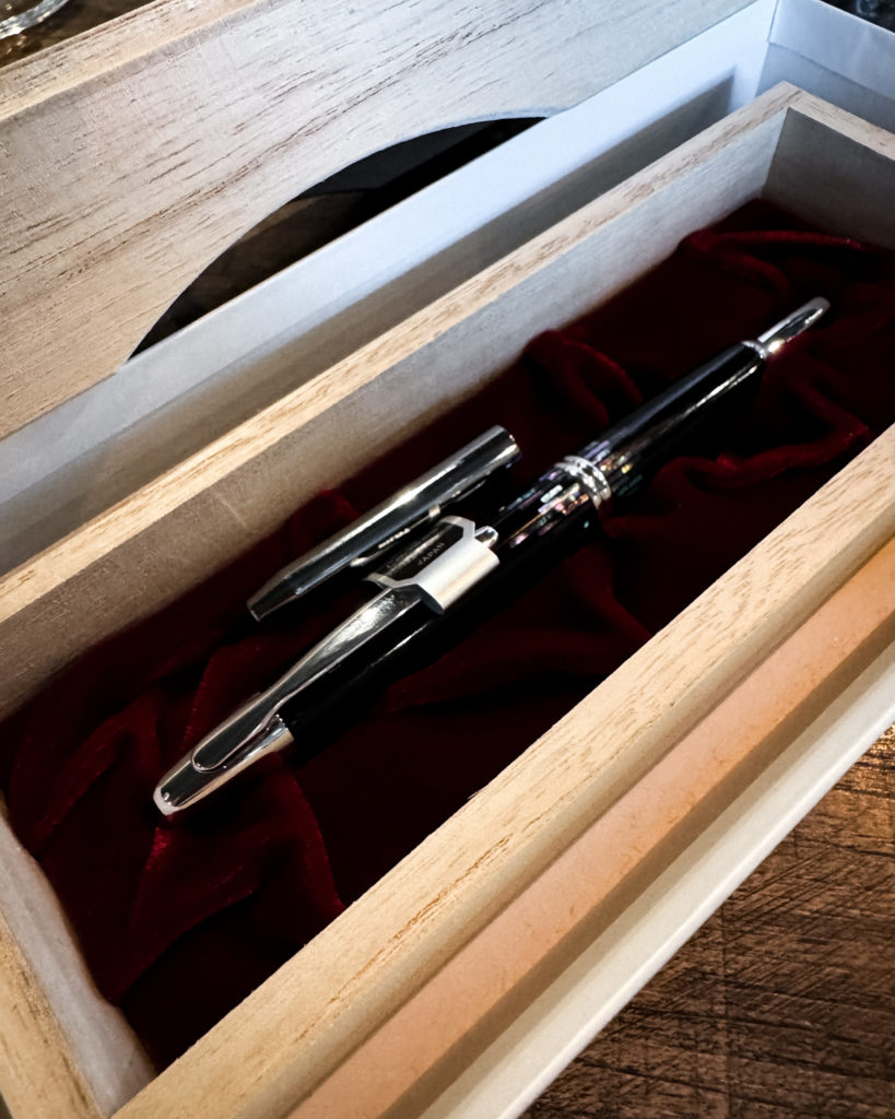 Alors que le temps passe, et que je me suis entourée de bien assez d’objets pour satisfaire mes besoins et envies, j’aime apporter du sens aux nouvelles acquisitions que j’accueille dans ma vie. Ce stylo plume, que j’accueille dans ma collection de papeterie avec gratitude, portera le symbole de cette étape de vie et de l’amour de mes proches dans les années à venir…