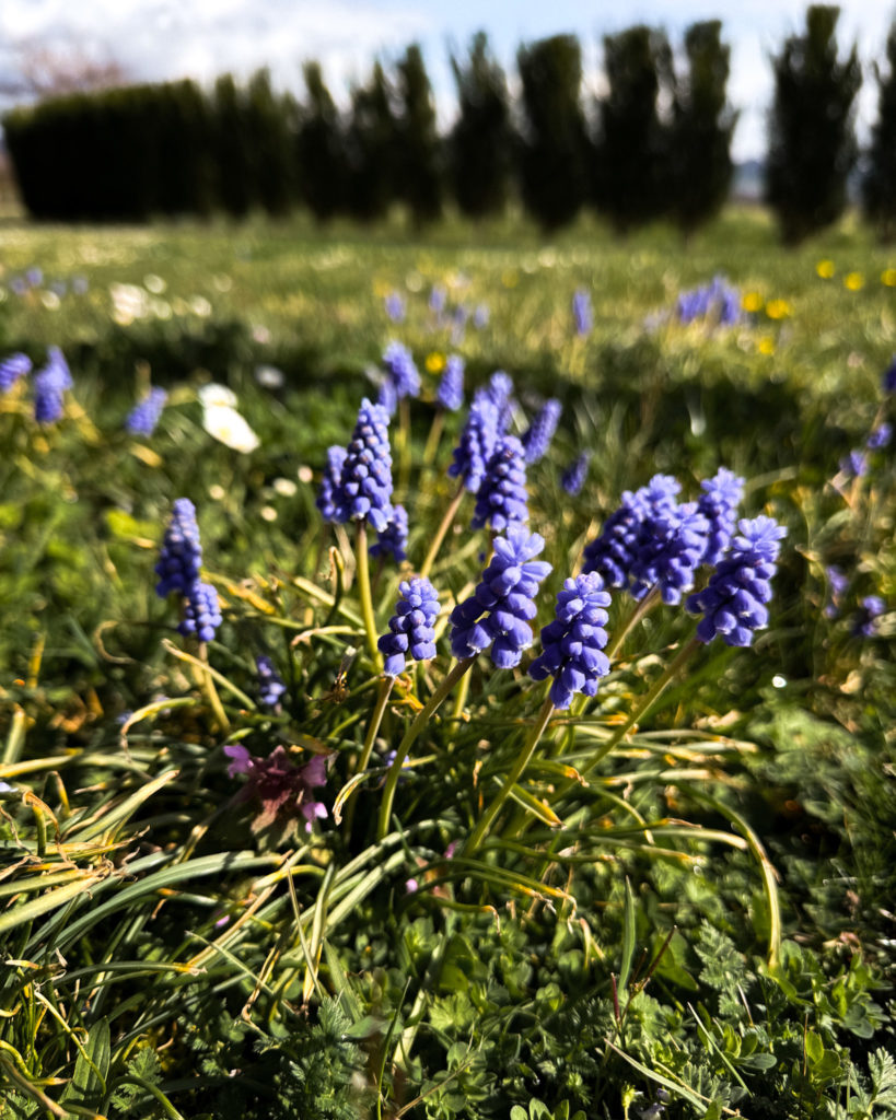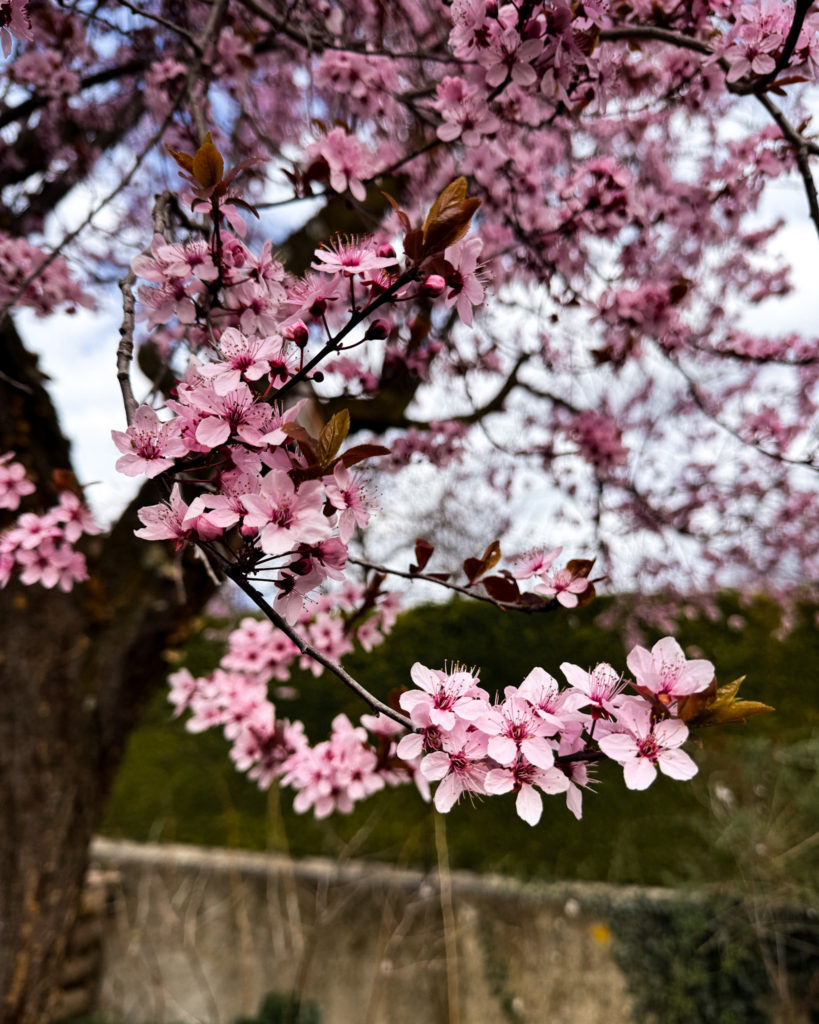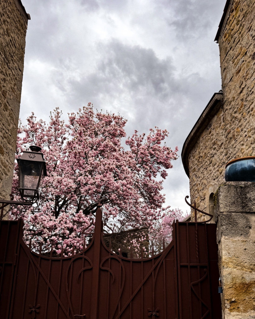 Inhaler l’air frais, sentir le vent dans les cheveux et repérer les premières fleurs de la saison. Au détour d’une rue de Montpeyroux, apercevoir un majestueux magnolia derrière un portail. Noter l’arrivée des fleurs de prunier, les humbles muscari sortis dans l’herbe du jardin, les jacinthes qui reviennent.